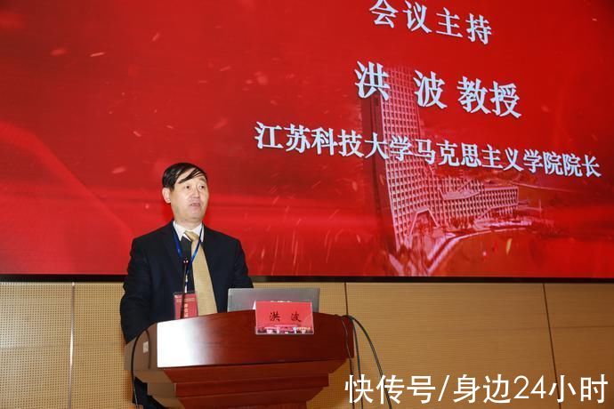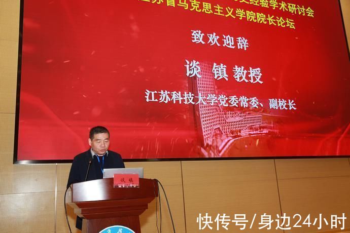 江苏科技大学校党委常委、副校长谈镇教授致欢迎辞。他向参会嘉宾详细介绍了江苏科技大学的办学历史、办学特色、服务国家重大战略情况,表示学校围绕“把马克思主义研究和宣传的氛围搞得浓浓的、让马克思主义旗帜高高飘扬”的目标,切实加强了马克思主义学院建设。